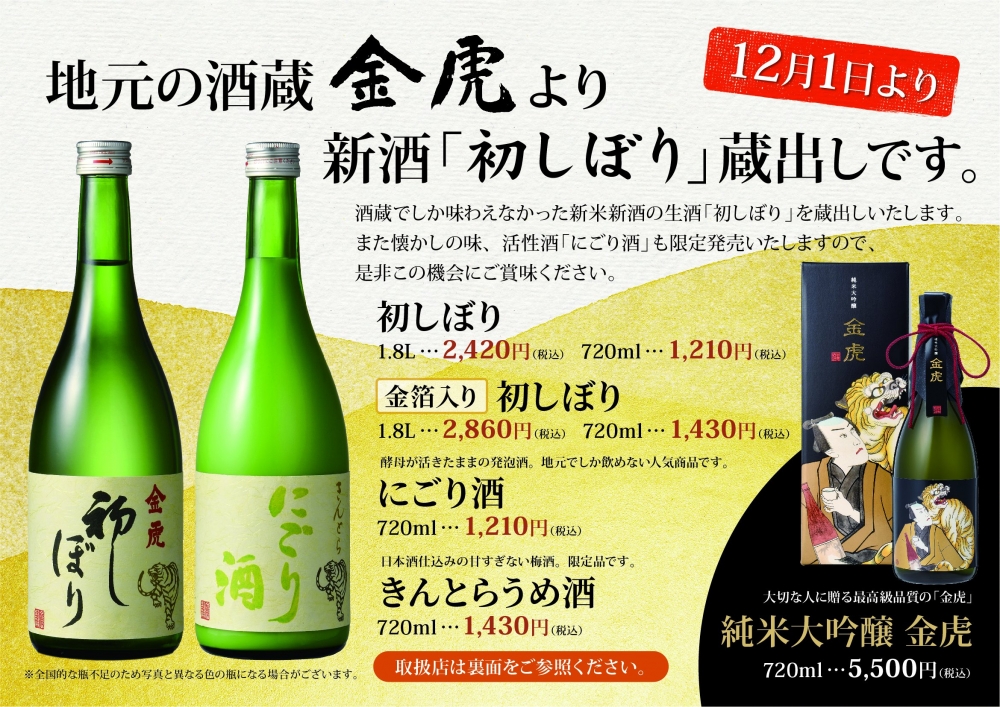 金虎酒造でも直売します(12月1日~30日)