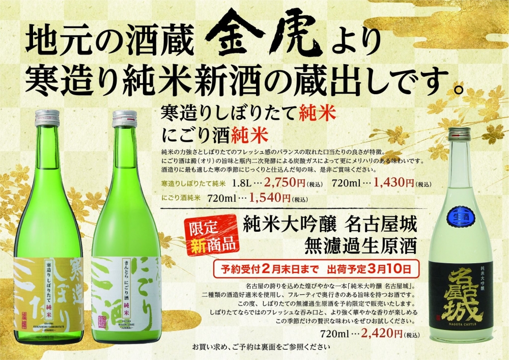 ご予約は金虎取り扱い店まで